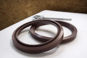 Pri struženju uporabljamo širok nabor kakovostnih materialov, kot so poliuretan (PU), PTFE in PTFE kompoziti, NBR, EPDM, H-NBR, VMQ, FKM (Viton®), POM ter drugi tehnični polimeri, ki jih izbiramo glede na delovne pogoje – tlak, temperaturo, hitrost, kemijsko odpornost in vrsto medija.